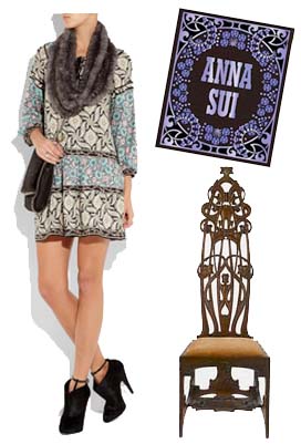We cannot wait to attend Fashion Meets Furniture: A Conversation with Anna Sui at The Metropolitan Museum of Art on Friday, January 14 at 6pm where Anna Sui will be joined by Andrew Bolton, curator of The Costume Institute, Alice Cooney Frelinghuysen, the Anthony W. and Lulu C. Wang Curator of American Decorative Arts, and Joseph Cunningham, curator, American Decorative Art 1900 Foundation. Anna will be discussing how Charles Rohlf’s (1853-1936) work influenced her upcoming Fall 2011 collection. One merely has to glance at Sui’s past collections to see how Charles Rohlf’s “artistic furniture” and intricate carving made during the American Arts and Crafts movement. the has a distinct influence on the designer.