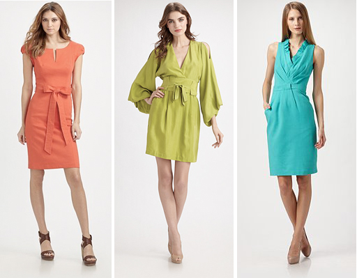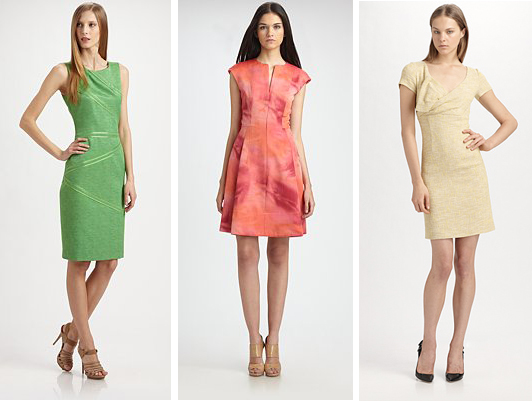 Left to Right: Milly Slim Haley Dress ($370), Josie Natori Swnlya Silk Habotai Dress ($495), David Meister Cotton Pique Dress ($388)