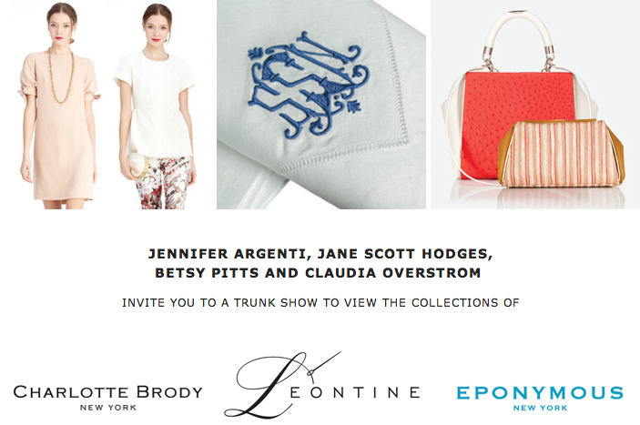 Charlotte Brody, Eponymous, & Leontine Linens Mar 6, 2013 | Sales & Trunk Shows For more information please email info@eponymousnewyork.com