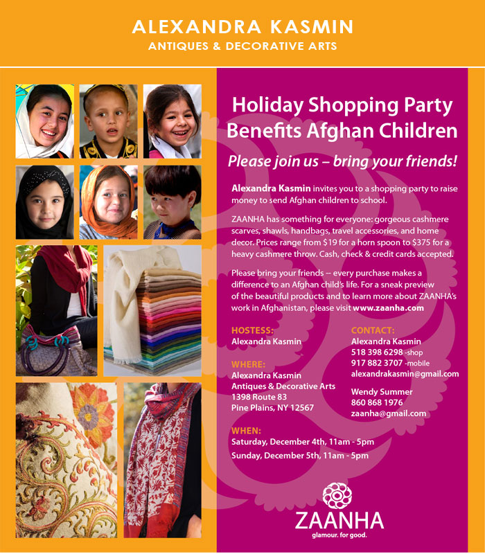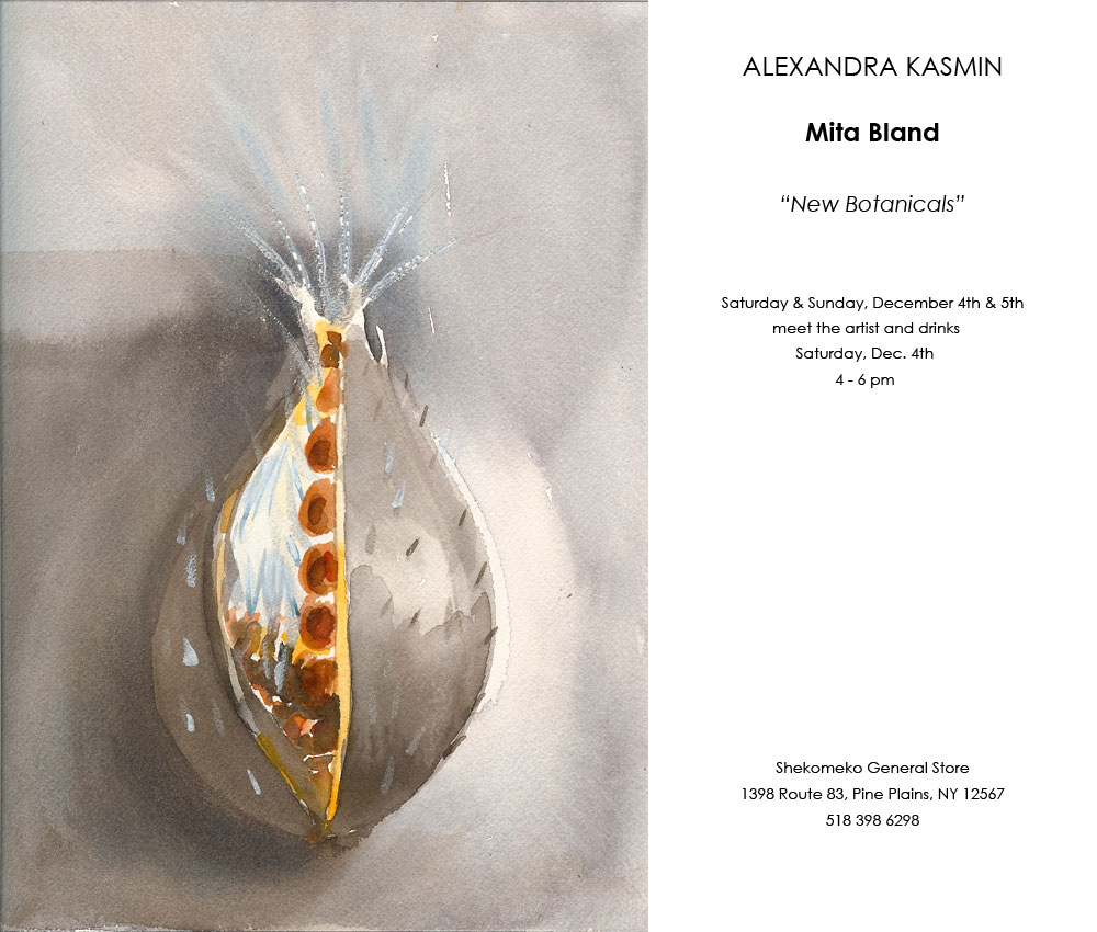 Stop in at the old General Store in Shekomeko which has been brilliantly transformed into a chic antique and decorative art space by our great friend Alexandra Kasmin. She is holding two events next weekend featuring lovely accessories, scarves and wraps by Zaahna (a percentage of your purchase will help to send Afghan children to school) and an exhibition by wonderful watercolorist Mita Corsini Bland, entitled “New Botanicals.” Click on the thumbnails for more information.