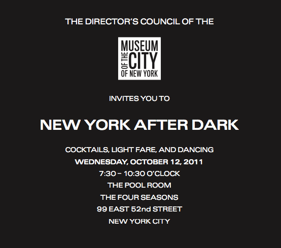 What could be more fabulous this fall than the MCNY Director’s Council’s New York After Dark? Just the sound of it brings to mind the alluring glamour of black lace and diamonds and fur, oh my! Who better to provide such dazzling luxury than Valentino and Graff, the generous and stylish sponsors of this sparkling evening. The Chairs, both dashing and demure, Allison Rockefeller, Andrew Roosevelt, Burwell Schorr, Calvery Moore, Celerie Kemble, Heather Mnuchin, Mark Gilbertson, Phoebe Gubelmann and Shafi Roepers will create an elegant atmosphere on Wednesday, October 12, in the shimmering Pool Room of the Four Seasons Restaurant, the icon of New York glamour designed by Mies van der Rohe and Philip Johnson.