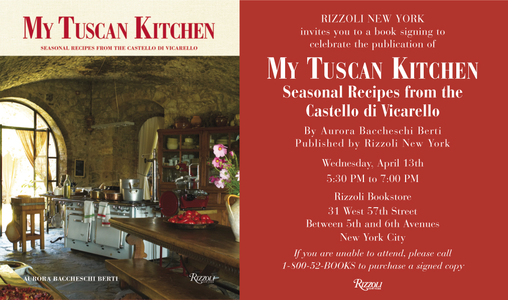 We would like to invite all of our friends to a Book Signing on Wednesday, April 13 at the Rizzoli Bookstore to meet the lovely and talented author, Aurora Baccheschi Berti of “My Tuscan Kitchen.” The forward of the book is written by Julian Niccolini, of the iconic Four Seasons Restaurant. To read the reviews and to purchase a book on line, please click on the image below.