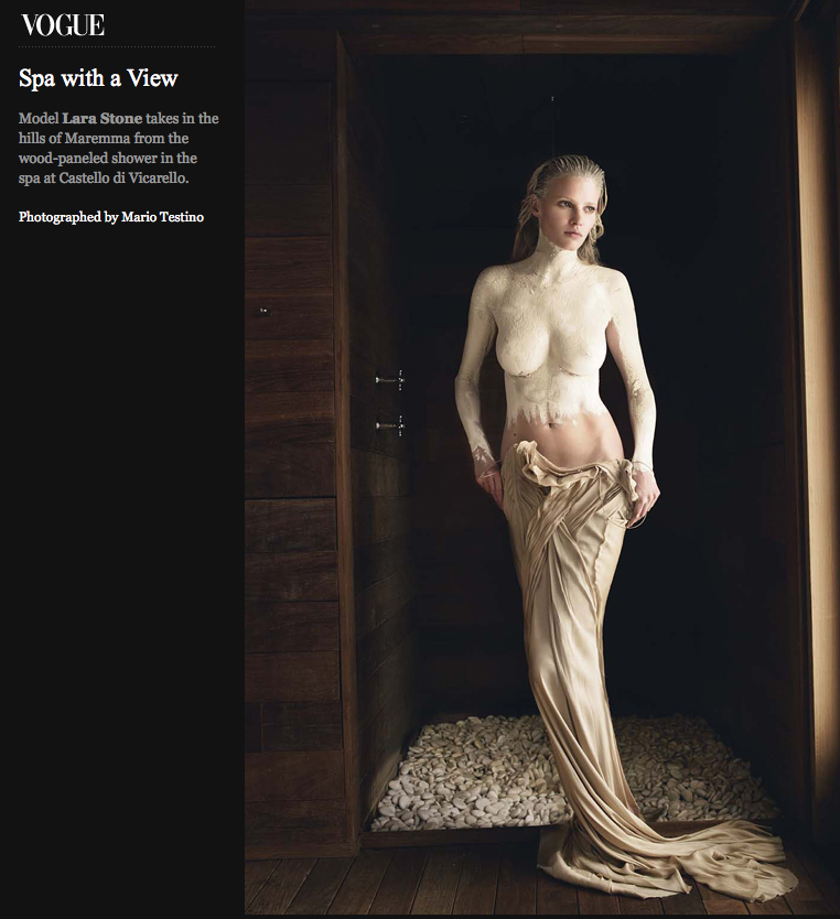 In case you missed the article on Castello di Vicarello in Vogue Magazine with incredible photos of Lara Stone by the legendary photographer, Mario Testino, just click on the photo below.