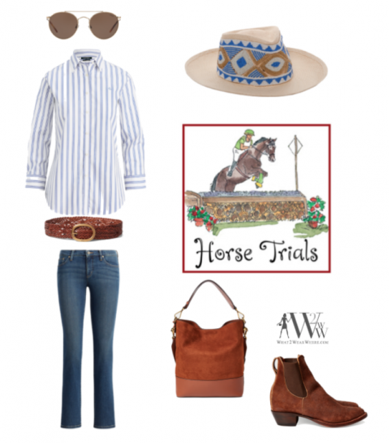 top: Ralph Lauren No-Iron Button-Down Shirt SALE $56.99 hat: Glamourpuss Nyc Evil Eye Panama $175 bottom: Ralph Lauren Modern Straight Curvy Jeans $89.50 accessories: Ralph Lauren Double -Bridge Round Sunglasses $165 / Ralph Lauren braided Leather Belt SALE $54.99 / Ralph Lauren Nubuck Leather Hobo Bag $498 shoes: Ralph Lauren Chelsea Plainview Suede Boot $990