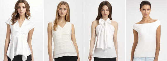 Left to Right: Boss Black Handkerchief Blouse ($195), Tory Burch Latty Tiered Silk Top ($250), Derek Lam Bow Halter Top ($550), Ralph Lauren Black Label Gracie Top ($155)